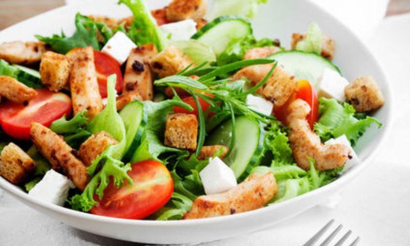 Mod de preparare: Se rumenește puiul într-o tigaie cu foarte puțin ulei sau se fierbe puiul, cum se dorește. Sau se face la grătar. Se taie apoi cubulețe sau se desprind fâșii sau se taie feliuțe. Apoi se pun și bucățile de avocado tăiate felii sau tot cubulețe. Se presară puțină brânză zdrobită sau se pune brânza tăiată în cubulețe. Se pune apoi și ceapa, tăiată rondele. Poate fi folosită și ceapa verde, care se găsește din belșug acum. Sosul, dressing-ul de salată se face tot din avocado. Se pun la blender fructele de avocado cu foarte puțin ulei sau deloc. Se poate adăuga și usturoi pisat în cazul în care vă place usturoiul. Iar după ce e gata, se adaugă sare, piper și zeama de lămâie și puțin muștar. Toate ingredientele în afara uleiului si fructului de avocado se pun în funcție de preferințe. Sigur că se pot pune și roșii dacă vă plac, pentru a colora mai mult salata. Se servește după ce se toarnă sosul peste salată.