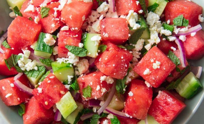 Mod de Preparare: Tăiați pepenele verde, feta, castraveții și avocado în cuburi. Amestecați-le într-un bol de salată, apoi adaugați menta tocată. Adăugați ulei de măsline, oțet balsamic, suc de lime. Amestecați și e gata! Poftă bună!