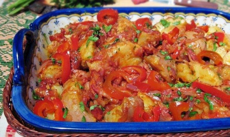 Mod de Preparare: Intr-o cratita incingem 2-3 linguri de ulei si prajim bucatile de carne pana isi schimba culoarea. Apoi se adauga kaizerul, lasam la prajit cateva minute. Apoi se adauga ceapa si usturoiul se adauga si ardeii si calim cateva minute compozitia dupa care se adauga vinul lasam 2-3 minute apoi adaugam apa cat sa acopere tot. A fiert totul sub capac aproximativ 15 minute nu lasam mai mult ca nu-mi place sa se inmoaie foarte tare ardeii sa fie fierti dar nu flescaiti, kapia fierbe destul de repede. Va sfatuiesc sa folositi carnea dezosata, se face mult mai repede si la orice mancare de pui puneti intotdeauna afumatura da un gust excelent mancarii.
