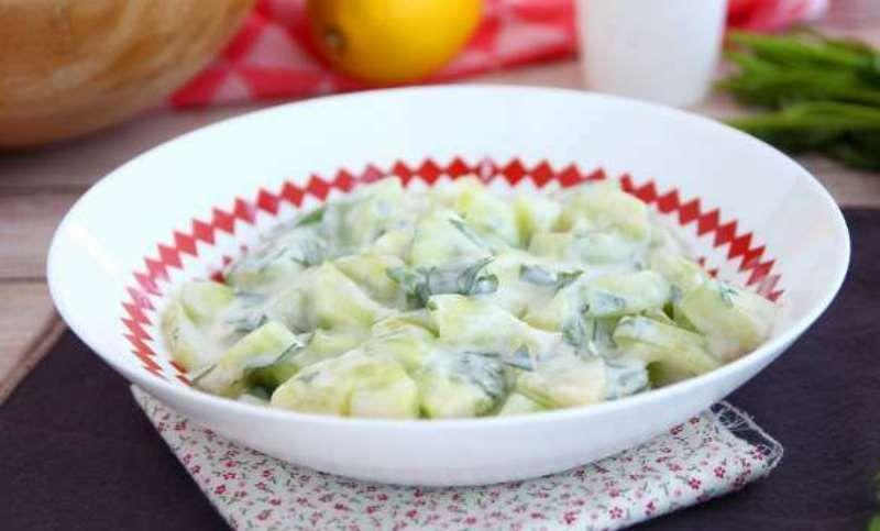 Mod de Preparare: Curatati castravetele de coaja si taiati-l in 4 pe lungime. Apoi taiati feliile in cubulete. Pentru sos amestecati un iaurt simplu cu sucul de la jumatate de lamaie, un varf de sare, un varf de piper si o mana de patrunjel tocat. Amestecati sosul cu castravetele taiat.