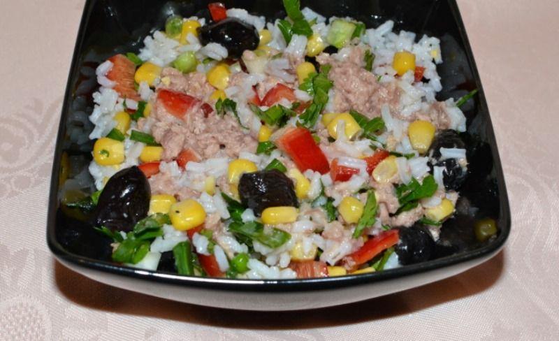 Mod de Preparare: Gătiți orezul conform instrucțiunilor de pe ambalaj. Scurgeți orezul și lăsați-l să se răcească pe o farfurie. Pregătiți toate ingredientele care vor merge în salată: