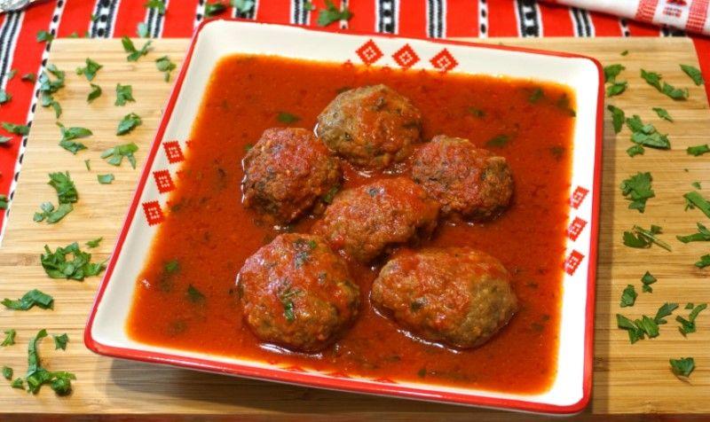Mod de preparare: Căliți ceapa într-o lingură de ulei, până se înmoaie, după care o adăugați într-un bol, peste carnea tocată. Adăugați oul, puțină sare și piper și amestecați bine. Luați din amestec câte o lingură și dați forma dorită chiftelelor, de obicei rotunde. Este bine să aveți mâinile umede, pentru că aluatul este lipicios. Când ați terminat de făcut chiftelele, puneți-le într-o tigaie înaltă, în care ați pus restul de ulei de rapiță. Rumeniți-le pe toate părțile, după care turnați conserva de roșii deasupra. Puneți apoi puțină apă în conserva goală și rotiți-o pentru a spăla și ultimile bucățele de roșii, după care turnați apa în tigaie. Dați focul la mediu și lăsați până dă în clocot. Dați apoi focul la mic, acoperiți tigaia cu un capac și lăsați la fiert pentru aproximativ o oră, amestecând ocazional. Puteți adăuga apă caldă, ori de câte ori este nevoie, sau vi se pare că sosul a scăzut prea mult. Aproape de final, adăugați mirodeniile, puțină sare și piper. Mai lăsați la fiert încă 10-15 minute, la foc mic. Serviți ca atare, alături de mămăligă sau pâine de casă, sau drept sos pentru paste.