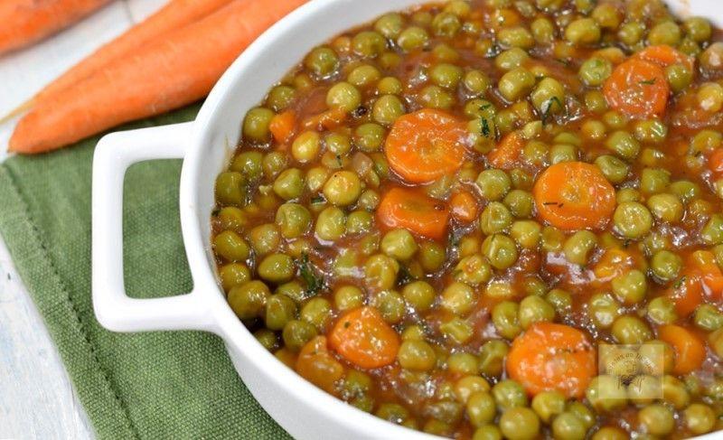 Mod de preparare: Speli morcovii, îi cureți și îi tai cubulețe. Speli mazărea și o pui la fiert în apă clocotită cu sare, 10-15 minute, o scurgi bine, dar păstrezi apa. Într-o tigaie încăpătoare, torni uleiul, adaugi untul, amesteci, iar când s-a topit, pui ceapa tăiată cubulețe, sare și piper, după gust. Când ceapa devine sticloasă, adaugi morcovii, amesteci și torni din apa în care a fiert mazărea. Lași să se înmoaie ușor, apoi răstorni și mazărea, dacă este nevoie mai torni puțină apă de la mazăre. După ce s-au înmuiat legumele, torni smântâna și mai fierbi aproximativ 15 minute. Dai deoparte și poți servi.