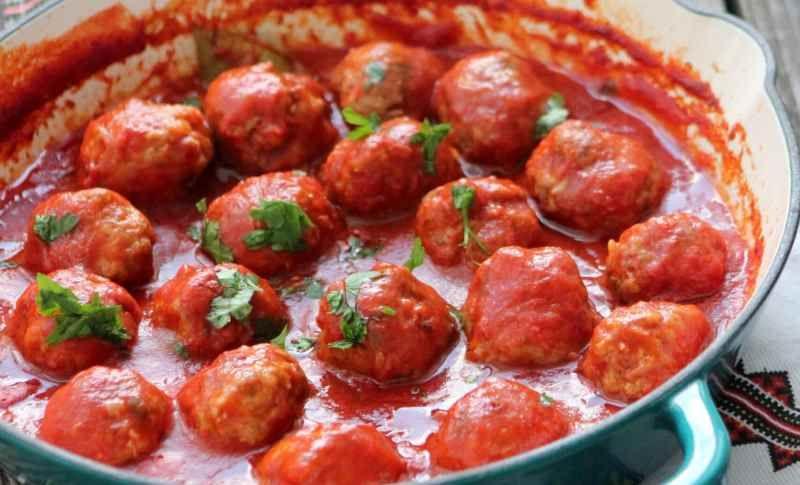 Prepararea sosului de roșii și busuioc: Într-o cratiță, încălziți uleiul de măsline și căliți usturoiul până când devine aromat. Adăugați roșiile în bulion și pasta de roșii. Lăsați să fiarbă la foc mic timp de 15-20 de minute, amestecând din când în când. Adăugați busuiocul, sare și piper după gust. Așezați chifteluțele pe un platou și turnați sosul de roșii și busuioc deasupra. Opțional, stropiți cu oțet balsamic înainte de servire.