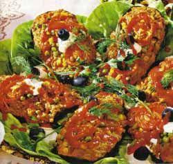 Mod de preparare: Vinetele se spala, nu se cojesc, dar se taie in 2 si apoi se indeparteaza cu o lingurita miezul, lasandu-se putin pe margini. Miezul de la vinete si ceapa se toaca marunt apoi se pun la calit intr-o tigaie cu 2-3 linguri de ulei. Dupa aceea se adauga carnea si mararul tocat marunt, sarea si piperul. Se lasa pe foc cam 10 minute, amestecand uneori, apoi cu acest continut se umplu vinetele asezate in prealabil intr-o tava (acoperita cu folie de aluminiu, optional). Deasupra lor se pun felii de rosii si eventual puteti rade si branza/cascaval. Se pun la cuptor pentru 30 de minute, pane se rumenesc putin deasupra. Sunt delicioase si consistente.