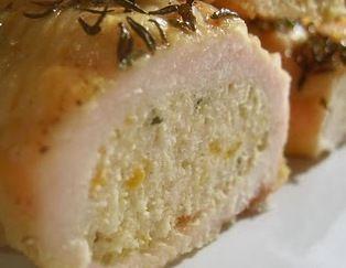 Mod de preparare: Se condimenteaza bucatile de piept de pui peste care se pune felia de cascaval si se ruleaza. Fiecare rulou se infasoara in sunca si se prinde cu o scobitoare. Se pun rulourile intr-o tava , se toarna vinul si se da la cuptor. Separat intr-o craticioara se topeste margarina, se adauga faina si se stinge cu sosul ramas de la rulouri, se condimenteaza si se adauga smantana. Sosul se toarna peste rulouri.