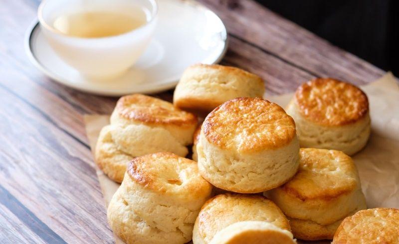 După ce aluatul s-a odihnit suficient, pune-l pe masa presărată cu făină și întinde-l cu sucitorul într-o foaie de 5 mm grosime. Apoi, rulează foaia de aluat și acoper-o cu folie. las-o la odihnit încă 15 minute, la temperatura camerei. Presară din nou făină pe masa de lucru și întinde ruloul cu sucitorul într-o foaie de 1 cm grosime. Decupează foaia cu un inel metalic sau cu un pahar cu diametrul de 4-5 cm. Așază pogăcelele astfel formate în tava mare a cuptorului, acoperită cu hârtie de copt. Poziționează-le la distanțe de 2-3 cm. Unge-le cu ou amestecat cu lapte și introdu tava în cuptorul încălzit în prealabil la 200 de grade Celsius. Coace pogăcelele pentru aproximativ 20-25 de minute.