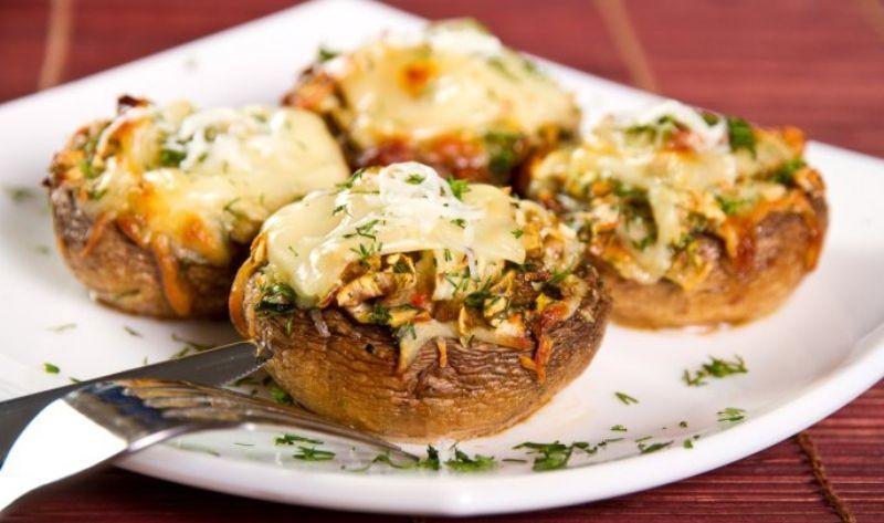 Mod de Preparare: Ciupercile se spala si se curata, le inlaturam piciorul. Ursturoiul de taie felii subtiri, sunca presata se ruleaza, cascavalul se rade. In fiecare palarie de ciuperca se pune cate o bucatica din catelul de usturoi. Apoi taiem din sunca facuta rulou si punem in palarie si sunca presata. Cu o pensula ungem putin ciupercile cu uleiapoi deasupra asezam cascaval ras si chiar taiat felii subtiri. Asezam ciupercile pe gratar si in 10 minute le servim.
