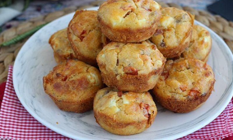 Mod de Preparare: Se spala si se taie rosia in bucati mici. Faramitati tonul si taiati feta in bucati mici. Intr-un bol, adaugati ouale, faina, praful de copt, uleiul de masline si piperul. Adaugati rosia, tonul si feta si amestecati bine. Turnati amestecul intr-o tava de briose unsa cu unt. Coaceti 20 min la 180°C.