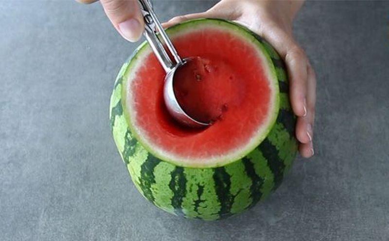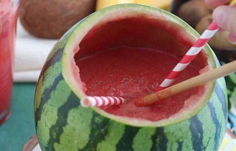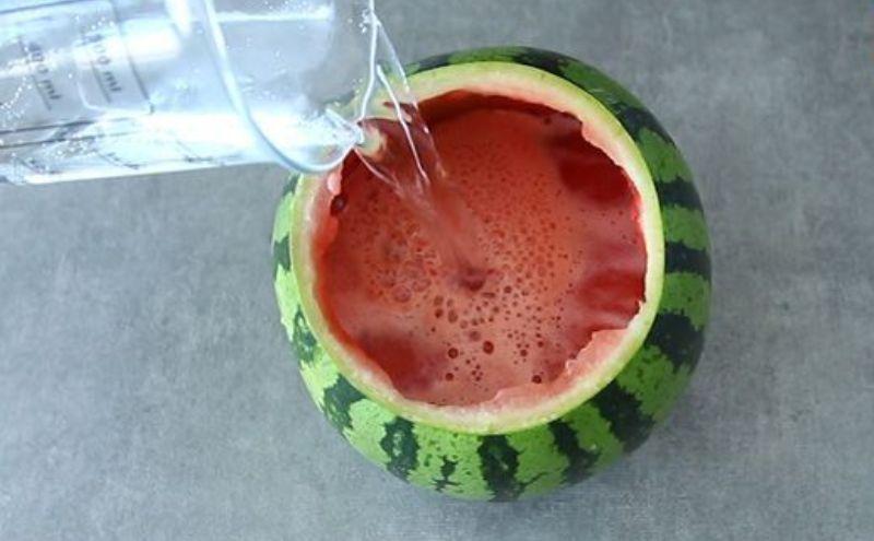 Mod de Preparare: Taiati capacul pepene verde si scoateti tot miezul. Puneti miezul de pepene verde si sucul intr-un blender si amestecati. Adaugati ginul si amestecati din nou. Strecutati amestecul pentru a indeparta semintele si turnati jumatate din amestec in pepenele verde scobit. Adaugati 200 ml de limonada in pepenele verde si 200 de ml in vas cu restul amestecului de pepene verde + gin. Amestecati. Cocktail-ul tau pepene verde este gata! Umpleti din nou atunci cand s-a golit ;-)