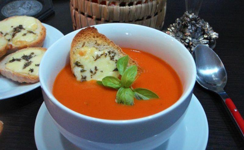 Mod de Preparare: Preîncălziți cuptorul la 190°C. Spălați și tăiați roșiile cherry în jumătate și puneți-le pe o tavă de copt acoperită cu hârtie de copt. Stropiți cu ulei de măsline și asezonați cu sare și piper. Se dau la cuptor pentru aproximativ 20-30 de minute ca să se coacă. Dați deoparte. Tăiați ceapa, busuiocul și cățeii de usturoi. Turnați un strop de ulei de măsline într-o oală și puneți la foc mediu. Căliți ceapa tocata timp de 5 minute. Adăugați usturoi, sare, piper și căliți aproximativ 1 minut. Apoi adăugați roșiile decojite, busuiocul tocat și zahărul și amestecați. Se lasă la foc mic 10 minute. Se toarnă supa și se adaugă roșiile prăjite, se fierb timp de 30 de minute, amestecând din când în când. Adăugați smântâna la sfârșitul gătitului. Mixati supa folosind un blender vertical.