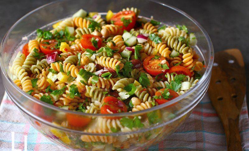 Mod de preparare: Puneți pastele la fiert în apă cu un praf de sare, conform instrucțiunilor de pe pachet. Căliți ciupercile în 2 linguri de ulei de măsline în care ați pus 1 cățel de usturoi trecut prin presă. Dacă ciupercile sunt micuțe, lăsați-le întregi. Dacă sunt mai mari, tăiați-le sferturi sau jumătăți. Tăiați gogoșarii fășii sau cuburi, după cum doriți. Când pastele sunt fierte, scurgeți-le bine de apă, adăugați o lingură de ulei de măsline, amestecați și lasați-le să se răcorească puțin. Adăugați peste paste restul legumelor, suc de lămâie, sare și piper după gust. Presărați salata cu pătrunjel proaspăt tocat fin și serviți. Salata de paste verzi cu legume e bună și călduță, dar și rece.