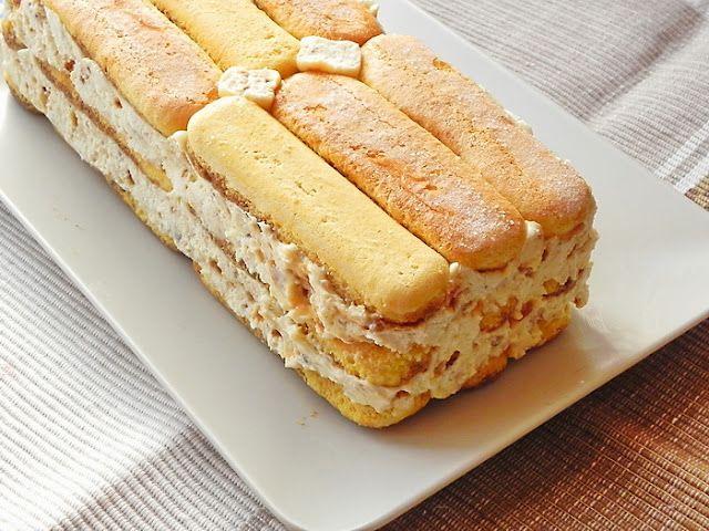 Intr-o tava de chec tapetata cu folie de aluminiu sau folie alimentara se formeaza un strat de piscoturi. Turnam jumatate din crema, acoperim cu un alt strat de piscoturi putin insiropate, restul de crema si inca un strat de piscoturi. Invelim bine in folie si dam la frigider pentru cateva ore, pana se intareste.