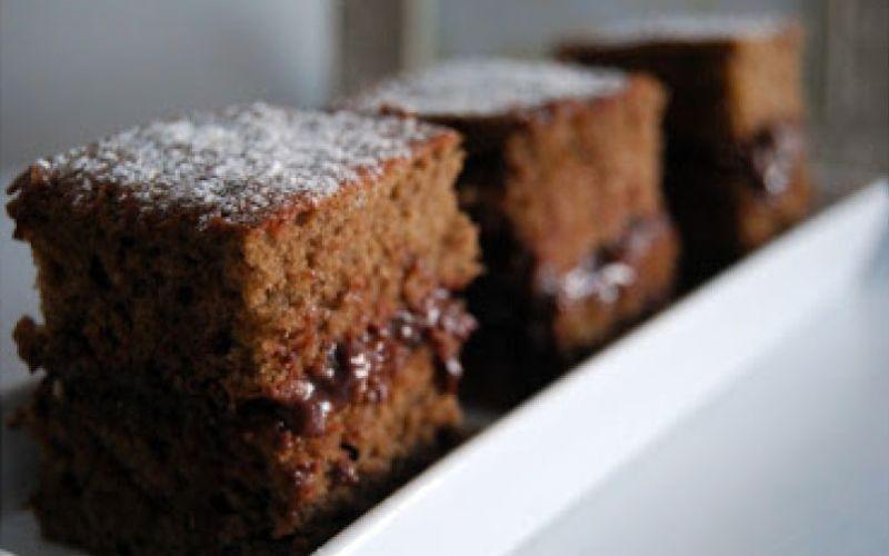 Intre timp, pregatiti crema astfel: Bateti zaharul cu untul, cafeaua si ciocolata topita in prealabil la bain marie. Adaugati cafeaua si nucile maruntite. Dupa ce blaturile sunt reci, ungeti unul dintre blaturi, apoi asezati-l cu grija pe celalalt deasupra. Taiati in cuburi si presarati zahar pudra.
