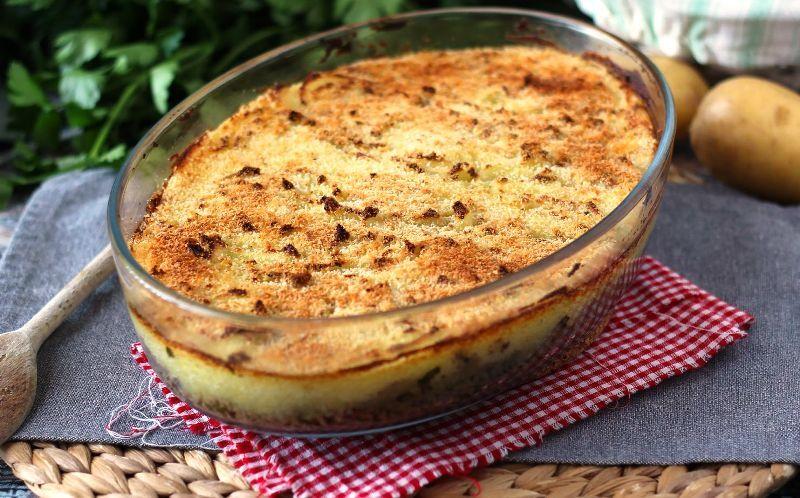 Mod de Preparare: Curățați și tăiați cartofii în bucăți. Fierbeți 20 de minute totul într-o oala mare cu apă clocotita în care ați adăugat sare.Verificați gătirea și scurgeți. Se zdrobesc cartofii apoi se adaugă laptele și se condimentează cu nucsoară, sare și piper. Amestecați bine. Adăugați apoi untul tăiat bucățele mici și amestecați din nou. Puteți folosi o sită pentru a obține un piure foarte fin. Ceapa se toacă și se rumenește într-o tigaie cu un strop de ulei de măsline și un pic de unt. Adăugați usturoiul zdrobit și amestecați până ce ceapa devine translucidă. Adăugați carnea tocată, sare și piper și rumeniți la foc mediu/mare până când carnea este fiartă. Adăugați bulionul și lăsați totul să se reducă la foc mediu, amestecând regulat. Când lichidul s-a redus, se adaugă pătrunjelul tocat și se amestecă. Luați de pe foc. Transferați carnea în vasul de gratinat. Întindeți piureul pe toată suprafața și neteziți deasupra. Folosind o furculiță, răzuiți suprafața piureului. Puneți pesmetul deasupra. Puneți plăcinta ciobanului în cuptor, pe modul grătar, pentru cel puțin 10 minute. Așezați vasul sus și urmăriți: blatul trebuie să fie frumos rumenit și colorat, fără să se ardă. Gata!