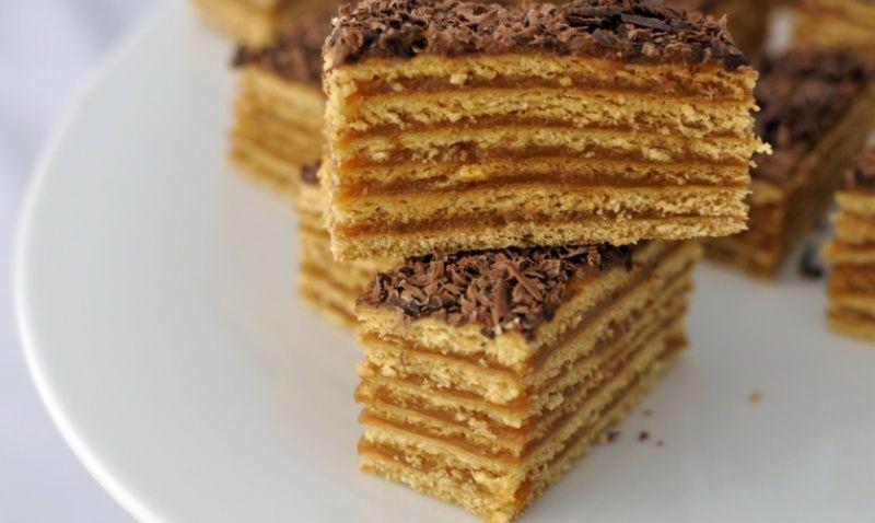 Se ansamblează prăjitura ungând foile cu un strat de cremă uniform, apoi se aşează una peste alta, presând uşor cu mâna. Deasupra se toarnă glazura un pic călduţă (de la centrul prăjiturii spre margini). Se lasă peste noapte la rece şi se taie a doua zi, în forma dorită.
