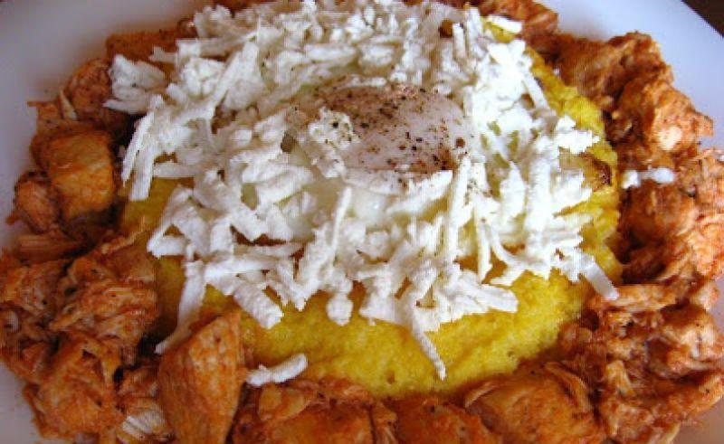 Mod de Preparare: Pieptul de pui se taie cuburi, se pune uleiul la incalzit intr-o cratita antiaderenta, se adauga cuburile de pui, se condimenteaza cu sare si piper si se lasa acoperit cateva min. amestecand din cand in cand. Se adauga 1 cescuta mica de apa si se lasa la inabusit la foc mic spre mediu, cu capacul intredeschis pana se evapora apa si puiul se patrunde(cca.15-20 min). Daca doriti un pic mai mult sos puneti putin suc de rosii. Se adauga pasta de tomate, se asezoneaza cu oregano uscat si se mai lasa putin pe foc. Se serveste cu mamaliguta si ou prajit sau fiert in apa, peste care se rade branza.