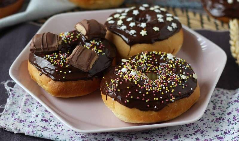 Mod de Preparare: Rehidratați drojdia uscată de panificație în lapte călduț (dar nu fierbinte). Lăsați sa stea 10 minute la temperatura camerei. Turnați făina în vasul mixerului. Adăugați zahărul și sarea pe o parte apoi acoperiți cu faină. Faceți o mică gropiță. Adăugați oul, amestecul de lapte/drojdie și aroma de vanilie în gropiță. Frământați totul timp de 5 minute la viteza 2. Adăugați puțin câte puțin untul moale în timp ce frământați. Când este bine încorporat, frământați încă 5 minute. Aluatul rezultat trebuie să fie neted și suplu. Faceți o bilă și lăsați aluatul să crească în vas, acoperit cu un prosop curat timp de 2 ore la temperatura camerei (cel mai bine este să puneți vasul într-un loc cald). Degazați aluatul pentru a elimina aerul format și se formați bile de 60 gr. Așezați biluțele de aluat pe o tavă de copt acoperită cu hârtie de copt, distanțați-le bine (va trebui să folosiți două tăvi) și faceți o gaură în centru înainte de a forma gogoșile. Acoperiți cu un prosop curat și lăsați să se odihnească timp de 1 oră până la 1 oră 30 de minute, la temperatura camerei. Coaceți gogoșile timp de 10 minute în cuptorul preîncălzit la 180°C. Topiți ciocolata și scufundați gogoșile în ea. Stropiți cu toppingurile la alegere și savurați!