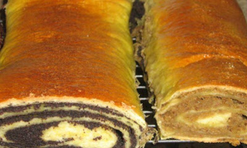 Mod de Preparare: Facem un aluat din ingredientele de mai sus; dupa ce a crescut, il impartim in 4 bucati egale. Intindem fiecare bucata intr-o foaie cat mai subtire. Peste foaie punem umplutura de nuca sau mac si rulam pe lungime. Asezam in tava, unul langa altul, ungem cu putin ulei pe lateral, iar pe deasupra cu ou batut cu putin ulei.