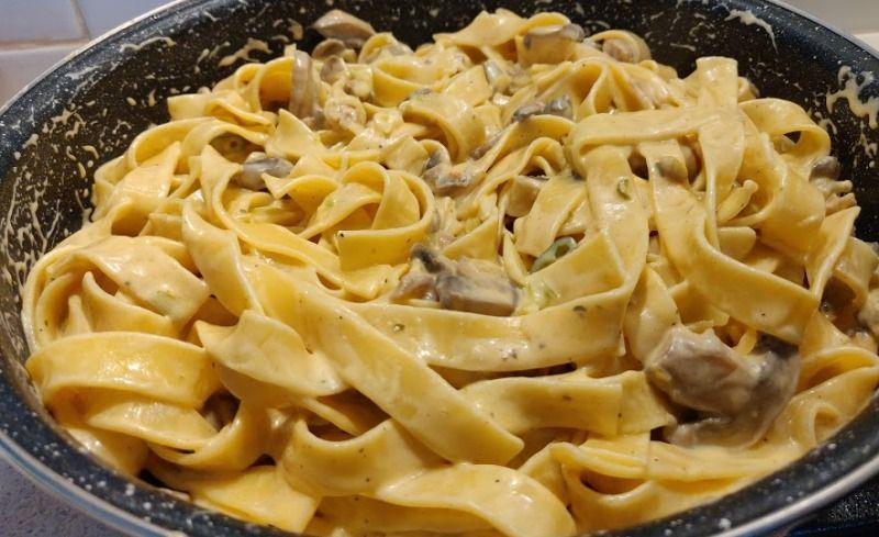 Mod de Preparare: Spalam ciupercile si le taiem fasii nu prea subtiri. Le sotam intr-o lingura de ulei, adaugam putina sare si le lasam sa fiarba acoperite pana scade apa. Socatem ciupercile din tigaie, punem 1 - 2 linguri de ulei si calim ceapa tocata marunt. Cand ceapa este translucida, adaugam rosiile decojite si tocate cubulete, ardeiul iute tocat marunt, usturoiul si telina tocata fin. Lasam la foc mic pana sosul se ingroasa si toate ingredientele sunt fierte, aproximativ 15 - 20 minute. Adaugam cimbrul, potrivim de sare si amestecam sosul cu pastele fierte si scurse. Aranjam pe farfurii pastele, adaugam ciupercile si deasupra presaram patrunjel proaspat tocat. Un pranz light de post daca nu folositi paste cu ou, cu proteine din ciuperci si doar 110 calorii la 100 de grame.