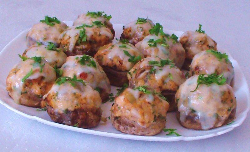 Mod de Preparare: Spalati ciupercile, indeparteti piciorusele, lasati ciupercile la uscat pe un servetel. Acum vom face umplutura: Puneti carnea intr-un bol, adaugati patrunjel, ceapa, masline, ulei de masline, pasta de rosii, si amestecati tot foarte bine. Adauga condimente (sare - piper - boia de ardei) si amestecati din nou. Acum umpleti ciupercile cu amestecul pe care l-ati facut inainte si le asezati in tava de copt. Apoi puneti tava la cuptor pentru 20 de minute la foc mic. Dupa ce trece 20 de minute scoateti tava de la cuptor, si adaugati si cascaval deasupra ciupercilor si puneti tava la cuptor pentru inca 5 minute. Ciupercile umplute la cuptor trebuie sa se coaca la foc mic. In functie de cum va place ciupercile, le puteti tine mai mult la cuptor sau mai putin. Sper sa va plac reteta mea de azi, si va doresc pofta buna.