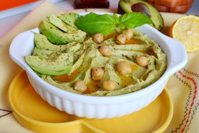 Mod de preparare: Pentru ca nu am folosit o conserva, timpul de preparare a fost mai lung. Am pus de seara pana dimineata nautul la inmuiat in apa calduta. Am scurs apa in care a stat peste noapte, am pus apa curata si l-am fiert pana a devenit moale (se zdrobeste usor intre 2 degete). In vasul unui robot de bucatarie se pune avocado, uleiul de masline, usturoiul taiat felii, zeama de lamaie, sarea si piperul. Pornim robotul pentru cateva secunde pana obtinem o pasta fina. Adaugam nautul fiert si scurs de apa, pasta tahini si pornim din nou robotul pana toate ingredientele sunt pine pasirate. Pasta obtinuta este mai groasa, asa ca o subtiem cu 2-3 linguri de apa in care am fiert nautul. Pentru ultima oara mixam ingredietele. Pasta se pune intr-un bol, se adauga deasupra pentru decor boabe fierte de naut, felii de avocado, asezonam totul cu putin piper rasnit si stropim cu ulei de masline (eu am folosit un ulei de masline infuzat cu ardei iute). Gustul e divin, se serveste cu lipie sau paine prajita.