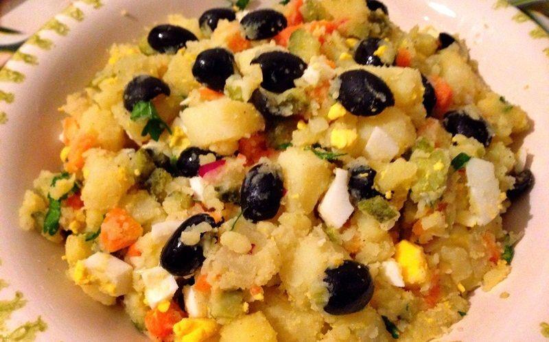 Mod de preparare: Pentru început, se pun cartofii și ouăle la fiert. Atunci când furculița intră în cartofi, aceștia sunt gata. Apoi, se iau de pe foc, se scurg și se lasă să se răcorească timp de 5-10 minute. După, trebuie să îi cureți de coajă și să îi tai cuburi mari. Ulterior, trebuie să te ocupi de ouăle care au fiert în prealabil timp de 7 minute și au stat alte 2 minute în apă rece. Acestea se curăță de coajă și se taie felii. Următorul pas este să cureți ceapa și să o toci solzișori. Când toate ingredientele sunt tăiate, pune-le pe toate într-un bol încăpător, adaugă măslinele și amestecă salata. Pune peste sare și ulei după gust și este gata de servit.