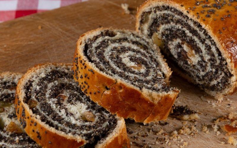 Mod De Preparare: Pentru aluat, se amestecă făina, sarea, zahărul vanilat și cel tos, untul şi se adaugă drojdia desfăcută în laptele călduţ. Se adaugă gălbenuşurile şi încă puţin lapte care să ajute la legarea aluatului. Se lasă la crescut 60 de minute. Se împarte aluatul în patru părţi care se lasă la crescut încă 30 de minute şi apoi se întind cu sucitorul. Pentru umplutura cu mac se face un sirop de zahăr şi apă în care se adaugă macul. Apoi, în umplutură se pune coaja de lămâie. Pe fiecare foaie se repartizează umplutura, se rulează şi se lasă la crescut pentru încă 60 de minute. Se aşază în tavă, se înţeapă cu furculiţa în mai multe locuri, se ung cu gălbenuş şi se coc 30 de minute.