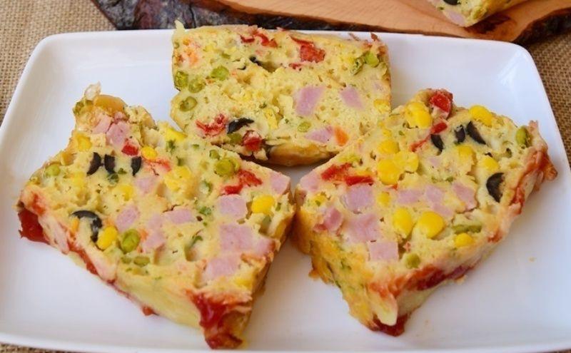 Mod de preparare: Tăiați șunca și ardeiul gras în cuburi de aprox. 1 cm. Brânza o dați pe răzătoare, verdeața, ciupercile și măslinele le tăiați mărunt. Puneți ouăle într-un castron și le mixați până se deschid la culoare și își măresc volumul. Incorporați uleiul, turnând puțin câte puțin, apoi laptele și iaurtul. Într-un alt vas amestecați făina cu praful de copt, sarea și restul condimentelor. Cu un tel de mână încorporați amestecul de făină în cel de ouă pregătit mai devreme. În această compoziție puneți toate ingredientele tăiate: șunca, măslinele, brânza, legume, etc. Amestecați să încorporeze uniform. Turnați amestecul în tava tapetată cu ulei și făină sau cu hârtie de copt. Dați tava la cuptorul preîncălzit la 180 de grade. Checul e gata cam în 40-45 de minute, când e închegat și rumenit frumos. Faceți testul cu scobitoarea ca să vă asigurați că e bine copt.