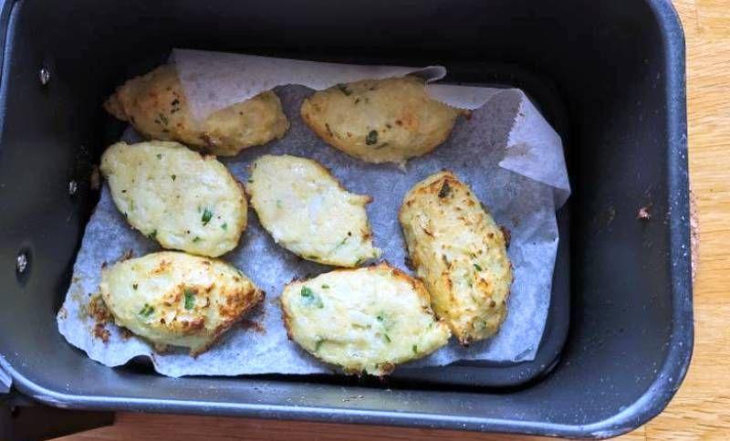 Mod de Preparare: Se curăță conopida îndepărtând buchețelele și aruncând tulpina. Fierbeți buchețelele în apă clocotită timp de aproximativ 10-11 minute, având grijă să nu fie prea moi. Odată fierte, se scurg buchețelele și se transferă într-un castron. Zdrobiți cu grijă buchețelele de conopidă, având grijă să pasați toate bucățile mari. Acum se adaugă ouăle, sarea, parmezanul, făina, pesmetul, piperul și pătrunjelul tocat mărunt. Se amestecă bine cu o furculiță până când toate ingredientele sunt complet omogenizate. Acum formați chifteluțele folosind două linguri, deoarece amestecul este destul de umed. Scoateți o parte din amestec cu o lingură, transferați-o în cealaltă, apăsând ușor și modelând-o ușor. Continuați să mutați amestecul între linguri, întorcându-le pentru a obține o formă ovală strânsă. Se pun chiftelele de conopidă, pe rând, în coșul aparatului de prăjit cu aer, tapetat în prealabil cu hârtie de copt și stropit cu un strat ușor de ulei. Pulverizați ușor chiftelele cu ulei spray și gătiți-le timp de 20 de minute la 180°C în modul de prăjire aer, amintindu-vă să le întoarceți la jumătatea gătitului pentru a asigura o rumenire uniformă. Chiftelele de conopidă gătite friteuza cu aer sunt gata!