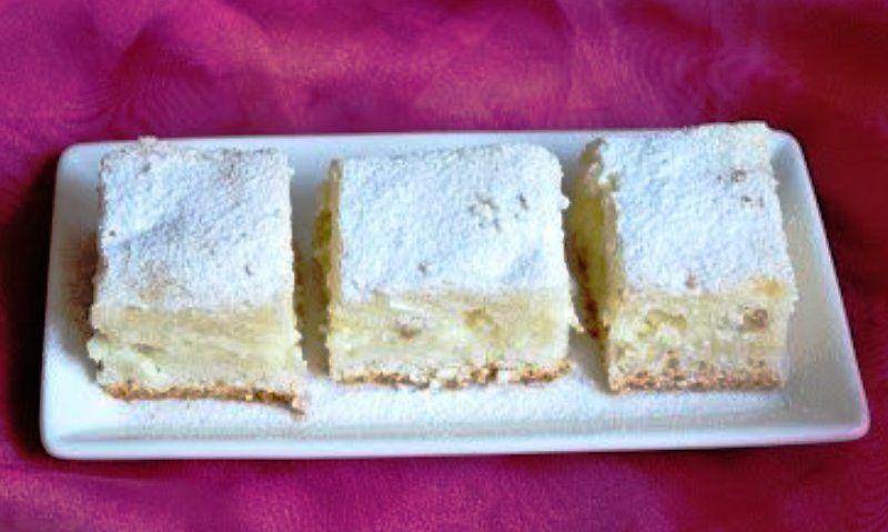 Mod de Preparare: Oualele se freaca impreuna cu zaharul pana se albesc, se adauga faina amestecata cu praful de copt, si apoi laptele, se incorporeaza putin cate putin si uleiul, alutul rezultat trebuie sa curga cand e luat cu lingura, un pic mai gros decat aluatul pt clatitite. Se unge tava cu unt si se tapeteaza cu faina... se toarna jumatate din aluat si se baga 10-12 min in cuptorul preincalzit timp de 10-12 min. apoi se scoate din cuptor se umple cu branza sau mere apoi se toarna desupra restul de aluat. se lasa la copt aprox 40 de min. Merele se curata se dau pa razatoare/robot se calesc la foc mic impreuna cu zaharul pana scade sucul lor se adauga stafidele si scortisoara la sfarsit. Stafidele se pun la inmuiat in rom, branza se amesteca impreuna cu oualele, apoi se adauga stafidele si grisul si zaharul care se adauga cu putin timp inainte ca umplutura sa se puna peste jumatatea de aluat ce a stat in cuptor punem compozitia peste aluat. Apoi jumatatea de aluat ramasa la cuptor fuga-fuga aprox 40 de min si gataaa cand se raceste se pudreaza cu zahar vanilat si se portioneaza.