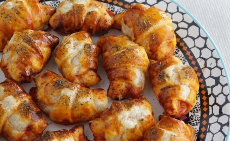 Mod de Preparare: Desfaceti aluatul de patiserie si intindeti sos de rosii pe toata suprafata. Taiati aluatul in forma de triunghiuri, cu varful in centru si baza la margine. In cazul in care aluatul este patrat sau dreptunghiular, taieti-l in lungime, apoi pe latime, sa rezulte patrate sau dreptunghiuri. Fiecare patrat/dreptunghi se taie pe diagonala, astfel incat sa rezulte triunghiuri. Pe fiecare triunghi, la baza, asezati o bucata de sunca si apoi presarati un pic de cascaval ras. Se infasoara fiecare triunghi din exterior spre centru. Indoiti capetele pentru a da forma forma unui semicerc. Aranjati mini cornurile pe o foaie de copt intr-o tava. Ungeti partea de sus a cornuletelor cu galbenus de ou, astfel incat sa devina rumenii la copt. Se presara deasupra un pic de oregano. Coaceti timp de 20 minutes la180°C. Lasati sa se raceasca si gata!