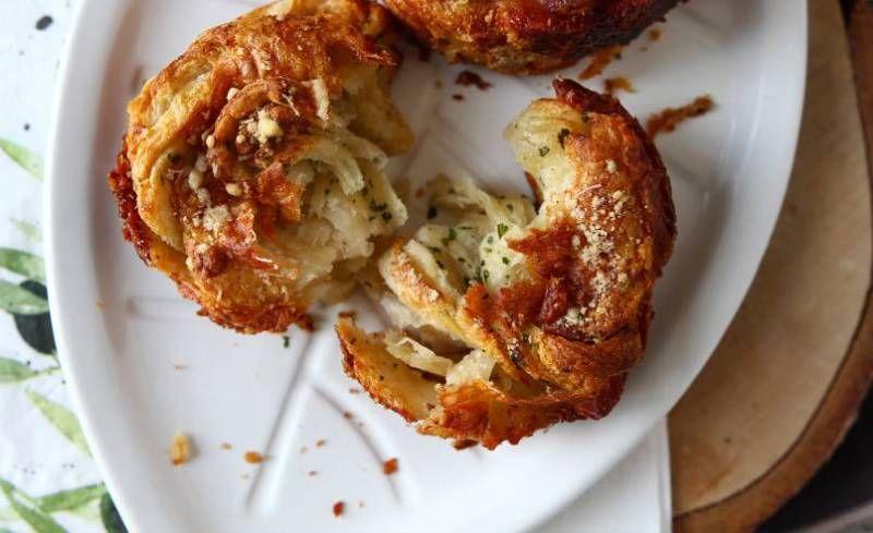 Mod de Preparare: Se amestecă untul, cățelul de usturoi zdrobit, pătrunjelul și piperul. Se desface aluatul de croissant și se aplatizează cu ajutorul unui sucitor, dacă este necesar. Se întinde amestecul anterior pe întreaga suprafață a aluatului. Se taie în jumătate transversal și se rulează cele două bucăți în cârnați.
