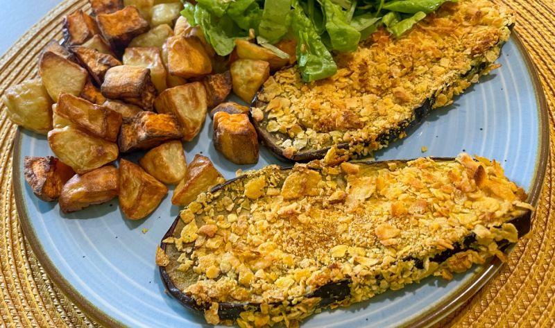 Se tapetează cu făină. Se amestecă oul cu sare și piper și se transferă vinetele în el. Se acoperă bine. Se transferă vinetele în pesmet și se acoperă bine din nou. Se înmoaie în ou și apoi în pesmet pentru ultima oară. Pulverizați ulei în tava Air Fryer cu ulei și așezați vinetele pane în ea. Pulverizați din nou cu ulei. Se programează Air Fryer în modul "Maxi Crisp" la 230°C timp de 10 minute. Întoarceți vinetele, apoi reprogramați Air Fryer la modul "Maxi Crisp" la 230°C timp de 8 minute.