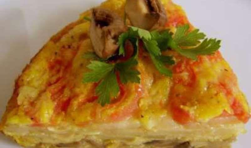 Mod de Preparare: Curatam dovleceii de coaja si ii taiem rondele subtiri. Ii presaram cu sare si ii lasam o ora la rece. Stergem dovleceii de apa cu prosoape de hartie si ii prajim in ulei incins, timp de 1-2 min, numai pana se inmoaie putin. Tocam ceapa marunt si ciupercile felii apoi le calim in 2 linguri ulei, pana cand scade toata apa pe care si-o lasa ciupercile. Condimentam amestecul cu sare, vegeta si piper. Batem bine ouale cu sare si piper, adaugam cascavalul ras si o lingura cu pesmet. Ungem un vas cu ulei si il tapetam cu pesmet. Asezam un strat de dovlecei, punem amestecul de ciuperci, repartizam jumatate din amestecul de ou, apoi alt strat cu dovlecei. Asezam si rosiile decojite si taiate felii subtiri. Turnam deasupra restul amestecului de ou. Dam vasul la cuptor pentru 15-20 min.