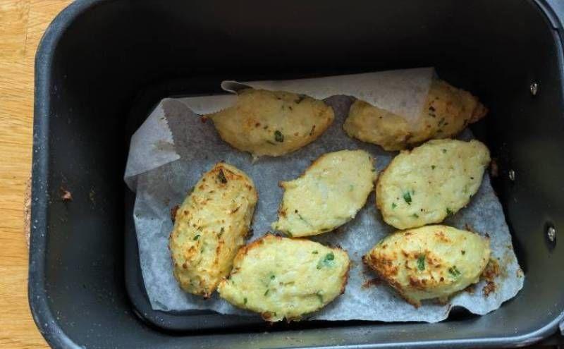 Mod de Preparare: Se curăță conopida îndepărtând buchețelele și aruncând tulpina. Fierbeți buchețelele în apă clocotită timp de aproximativ 10-11 minute, având grijă să nu fie prea moi. Odată fierte, se scurg buchețelele și se transferă într-un castron. Zdrobiți cu grijă buchețelele de conopidă, având grijă să pasați toate bucățile mari. Acum se adaugă ouăle, sarea, parmezanul, făina, pesmetul, piperul și pătrunjelul tocat mărunt. Se amestecă bine cu o furculiță până când toate ingredientele sunt complet omogenizate. Acum formați chifteluțele folosind două linguri, deoarece amestecul este destul de umed. Scoateți o parte din amestec cu o lingură, transferați-o în cealaltă, apăsând ușor și modelând-o ușor. Continuați să mutați amestecul între linguri, întorcându-le pentru a obține o formă ovală strânsă. Se pun chiftelele de conopidă, pe rând, în coșul aparatului de prăjit cu aer, tapetat în prealabil cu hârtie de copt și stropit cu un strat ușor de ulei. Pulverizați ușor chiftelele cu ulei spray și gătiți-le timp de 20 de minute la 180°C în modul de prăjire aer, amintindu-vă să le întoarceți la jumătatea gătitului pentru a asigura o rumenire uniformă. Chiftelele de conopidă gătite friteuza cu aer sunt gata!