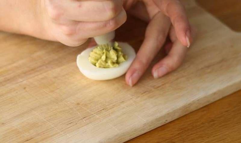 Mod de Preparare: Fierbeti ouale in apa clocotita timp de 10 minute. Lasati-le sa se raceasca, curatati-le si taiati-le in 2. Luati toate galbenusurile si puneti-le intr-un castron. Adaugati maioneza si amestecati cu o furculita zdrobind in acelasi timp galbenusurile. Apoi adaugati puțină sare, piper, avocado si amestecati cu o furculita, zdrobind avocado. Folosind un posh, umpleti jumatatile de oua. Gata!