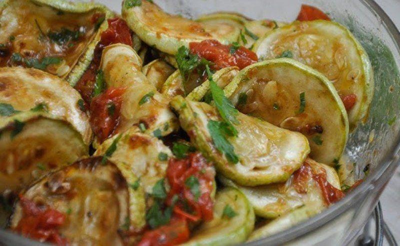 Mod de Preparare: Dovleceii se spală, se înlătură cotorul și se feliază rondele de 1/2 cm. Se coc pe plită câte 1-2 minute pe fiecare parte. Se scot într-un castron. Imediat se stropesc cu ulei de măsline și oțetul amestecat cu apă și miere. Ceapa verde se spală și se toacă mărunt. Usturoiul se curăță și se pisează. Adăugăm ceapa verde, usturoiul și mărarul peste dovlecei și amestecăm ușor. Condimentăm cu sare și piper. Servim imediat.