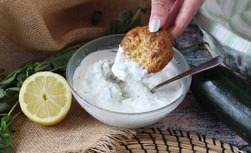 Mod de Preparare: Se rade dovlecelul și se presează printr-o sită (sau un prosop curat) pentru a elimina cât mai multă apă. Se pune dovlecelul ras și scurs într-un castron și se adaugă sarea, piperul, oul, făina și feta sfărâmată. Se amestecă bine până se obține un aluat omogen. Formați chifteluțele cu o lingură și așezați-le în tava Air Fryer, pe hârtie rezistentă unsă cu ulei. Coaceți la 190° timp de 20 de minute în modul "Air Fry", întorcând la jumătatea gătitului. Între timp, preparați sosul amestecând iaurtul grecesc, feta, menta, lămâia, sarea și piperul.
