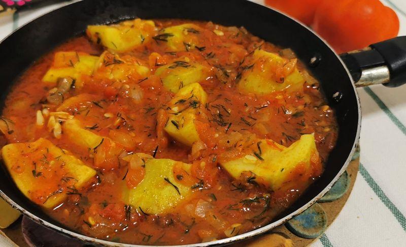 Mod de Preparare: Dovleceii se spala si se taie cubulete mici. Dovleceii se tavalesc prin faina si se prajesc pe rand in ulei incins. Se scot si se pastreaza la cald. Uleiul ramas se strecoara, sa inlaturam rezidurile de la faina si calim ceapa tocata marunt. Cand ceapa incepe sa se ingalbeneasca, adaugam rosiile tocate marunt, usturoiul tocat si dovleceii. Acoperim cu apa cat sa acopere dovleceii si lasam sa fiarba acoperit pentru 10-15 minute. Condimentam cu sare si piper. Mararul se adauga in momentul cand stingem focul. Se serveste ornata cu rosii si marar verde.