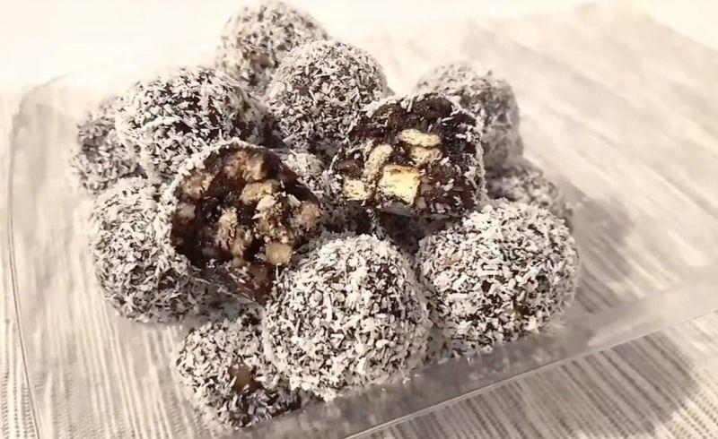 Mod de Preparare: In 2 vase diferite am pus nucile si curmalele in apa si le-am lasat acolo cam…7-8 ore sa se inmoaie. Spre seara cand s-au inmuiat am scurs apa si atat nucile cat si curmalele le-am bagat la blender, s-a format asa ca o pasta, peste care am adaugat ulei de cocos, am amestecat si apoi am luat cate putin si am format bilute din acest amestec pe care le-am trecut apoi prin nuca de cocos maruntita. Foarte simplu, delicios si as indrazni sa spun si sanatos tinand cont de ingrediente…ce spuneti?! Merita incercat.