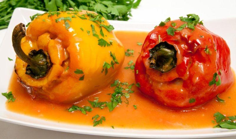 Mod de Preparare: Curatam ardeii de cotor si seminte, se spala bine si se lasa la scurs. Ardeii se cresteaza la capat, ca sa patrunda fierberea si prin umplutura. Ceapa se curata, se spala, se toaca marunt si se pune la calit intr-o cratita cu ulei. Ciupercile se curata, se spala bine, se taie bucatele mici si se adauga peste ceapa cand aceasta s-a ingalbenit. Adaugam ardeiul gras rosu tocat marunt, apoi orezul si 100 ml apa fiarta. Se mai tine amestecul pe foc pana dispare toata apa. Se adauga verdeata tocata marunt si se condimenteaza cu sare si piper. Umplem ardeii cu acest amestec, se ung cu putin ulei, se pun intr-o cratita unsa cu ulei si se acopera cu apa. Se introduc in cuptor, iar dupa jumatate de ora, adaugam bulionul de rosii amestecat cu o lingura cu faina si subtiat cu putina apa. Se lasa in cuptor la foc potrivit pentru inca o ora.