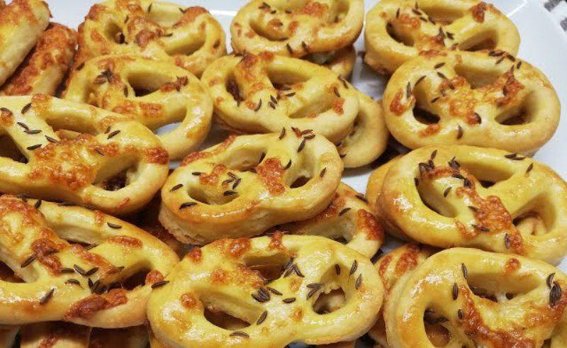 Mod de Preparare: Se incalzesc smantana, sarea, drojdia. Se amesteca bine cu mana faina, untura si margarina, apoi adaugam smantana, sarea si drojdia incalzite, se omogenizeaza toata compozitia, se framanta bine si se lasa la dospit 1/2 ora. Aluatul dospit se imparte in 2 sau 3 bucati . Se intinde fiecare bucata cu sucitorul pe o planseta pudrata cu faina, deasupra presaram chimion pe care il presam usor cu sucitorul in aluat. A intins aluatul pe masa de bucatarie pe o hartie de copt pudrata cu faina. Cu forma decupam covrigei pe care ii dam prin ouale batute, apoi prin cascaval razuit, asezam covrigeii cu partea unsa si pudrata cu cascaval in sus, intro tava tapetata cu hartie de copt si coacem la foc potrivit pana se rumenesc usor. A copt 6 tavi, aprox 120 de covrigei. Cascavalul pe care il folositi e bine sa fie uscat. In caz contrar acesta se va cocolosi cand il razuiti si va trebui sa il amestecati cu putina faina sa il puteti pune pe covrigei. A framantat cu mixerul, folosind dispozitivele pt framantat.