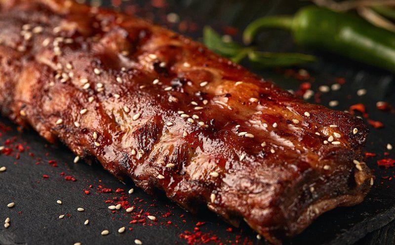 Mod de Preparare: Tocam marunt cimbrul si frunzele de salvie. Pregatim un bol mare in care zdrobim usturoiul. Adaugam salvia, cimbrul, mustarul, pasta de rosii, mierea, uleiul de masline si boia de ardei. Condimentam cu sare si piper macinat. Amestecam bine toate ingredientele pana cand obtinem o pasta. Punem coastele de porc in pasta pregatita si le ungem bine. Acoperim bolul cu folie alimentara si il introducem in frigider pentru minim o ora. Dupa aproximativ 45 de minute, incalzim cuptorul si pregatim o tava. Scoatem carnea de porc marinata din frigider si o asezam in tava pregatita. Turnam peste bucatile de coaste cele 4-5 linguri cu apa si punem deasupra sosul ramas in bol. Introducem tava in cuptorul incalzit pentru aproximativ 45 de minute. Din cand in cand scoatem vasul din cuptor si stropim coastele de porc cu sosul din tava. Cand carnea este rumenita si se indeparteaza usor de pe oase, scoatem preparatul din cuptor. Servim cald, cu garnitura preferata si salate sau muraturi.