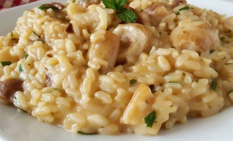 Mod de Preparare: Curatati ciupercile si taiati-le in bucati. Separati-le in doua parti. Intr-un bol de salata, diluati cubul de supa de legume in 500 ml de apa fierbinte. Intr-o cratita, se toarna o picatura de ulei de masline si se soteaza ceapa tocata, aproximativ 2 minute. Adaugati o parte din ciuperci si amestecati. Adaugati supa de legume diluata. Acoperiti si fierbeti timp de cateva minute la foc mic, astfel incat supa sa inmoaie ciupercile. Intr-o tigaie, turnati o picatura de ulei de masline si adaugati orezul. Se amesteca pana devine translucid. Adaugati vinul alb pentru a deglasa si continuati sa amestecati. Adaugati un polonic de supa si amestecati pana cand orezul a absorbit totul. Repetati pana cand ati terminat supa. Dupa ce ati adaugat ultimul polonic de supa la risotto, luati o tigaie pentru a gati cealalta jumatate de ciuperci. Adaugati o picatura de ulei de masline si caliti catelul de usturoi pentru cateva secunde. Adaugati ciupercile si caliti-le. La sfarsitul gatitului, adaugati patrunjelul tocat si pastrati putin pentru decor. In timp ce risotto-ul este in tigaie si ciupercile s-au calit, pregatiti un platou de servire! Într-un platou adanc, aranjati risotto-ul formand o gropita in centru. In interior asezati ciupercile prajite. Puneti patrunjel tocat si gata!