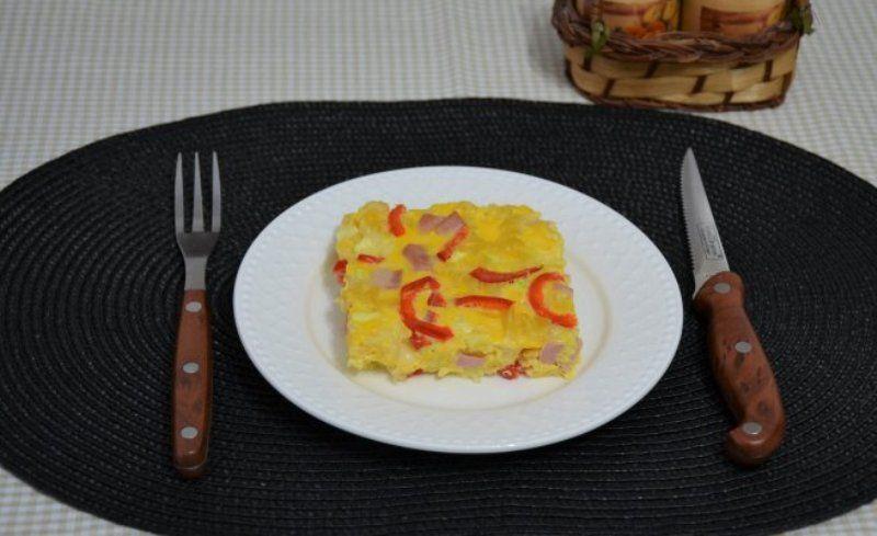 Mod de preparare: Desfaci conopida și o fierbi în apă cu sare, timp de 5 minute, apoi o scurgi bine de apă. Ungi cu ulei un vas și îl tapetezi cu pesmet. Bați ouăle cu smântâna și condimentezi după gust, cu sare și piper. Speli ardeiul gras și îl tai felii. Pui conopida amestecată cu feliile de ardei în vasul termorezistent (uns cu ulei și presărat cu pesmet) și apoi adaugi ouăle bătute cu smântâna și introduci vasul în cuptorul preîncălzit la 180 de grade C și îl lași timp de 25-30 de minute. Scoți vasul, adaugi cașcavalul dat pe răzătoarea mare și introduci vasul la cuptor pentru câteva minute, până se topește cașcavalul.
