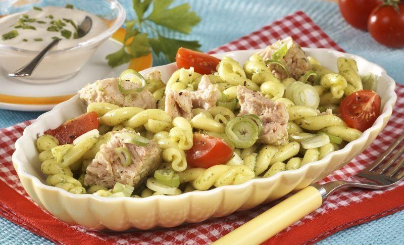 Mod de Preparare: Pastele le fierbi ca-n indicatiile de pe pachet, adaugand fasolea verde in ultimele 5-7 minute de fierbere. Concomitent, intr-o alta oala fierbi tot atata timp cat pastele fasolea alba. Pastele cu fasolea verde se clatesc, se scurg si se lasa sa se raceasca. Procedezi la fel si cu fasolea alba. O scurgi, clatesti si racesti. Apoi o amesteci cu iaurtul, putin ulei din conserva de ton, zeama de lamaie, putina sare. Adaugi pastele, tonul maruntit, fasolea verde, ceapa taiata solzisori si amesteci bine, cu grija sa nu pasezi compozitia. Deasupra presari patrunjel tocat. La masa poti pune alaturi un bol cu iaurt din care fiecare sa se serveasca cat doreste si jumatati de lamaie.