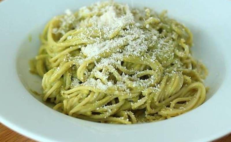 Mod de Preparare: Puneti spaghetele in apa clocotita si fierbeti-le conform timpului indicat pe ambalaj (aproximativ 10 minute). Intr-un vas de blender amestecati restul ingredientelor. Mixati pana cand amestecul are o textura cremoasa. Amestecati cu spaghetele fierte si scurse in prealabil. Serviti cu parmezan ras. Pofta buna!