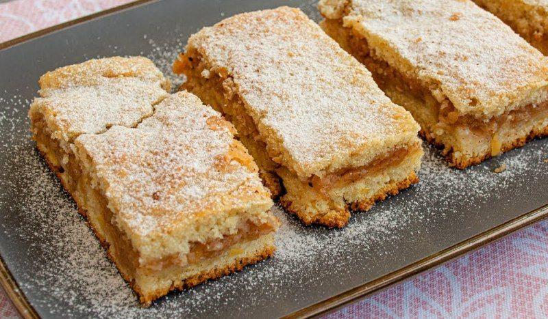 Mod de Preparare: Se mixeaza ouale intregi cu zaharul, se adauga uleiul si se mixeaza pana se incorporeaza. Intr-un alt bol amestecam faina cu praful de copt si o adaugam amestecului precedant alternand cu laptele. Se curata merele, se dau pe razatoare sau se taie felii si se calesc cu zahar pana scade sucul pe care-l lasa. Cand sunt calite se adauga un pic de scortisoara (1/2 lingurita) si se lasa sa se racoreasca. Se tapeteaza tava cu foaie de copt sau unt (a mea a avut 25 cm/30 cm) si se toarna jumatate din aluat care se coace pentru 10-12 minute la 180 grade C (foc potrivit), in cuptor preincalzit. Se scoate si se pune amestecul de mere calite deasupra apoi se toarna si restul de aluat si se mai coace cca. 40 de minute. Cand este gata se pudreaza cu zahar pudra, se taie cand este racita complet. Nemaipomenit de frageda, aromata si buna!