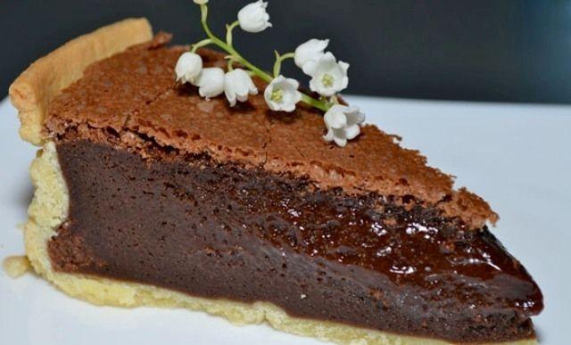Mod de preparare: Aluatul se intinde in foaie foarte subtire, apoi se pune in tava unsa cu unt. Se niveleaza bine si se taie surplusul, sa fie aluatul cu 1 cm in afara formei, atat. Se prepara crema de ciocolata. Intr-un vas se pun untul, mascarpone si ciocolata rupta bucati (cantitati egale) si apoi se pun pe foc, la topit. Se amesteca pana cand ciocolata este topita complet. Aceasta operatiune se poate face pe bain-marie, direct pe foc (amestecand continuu) sau la microunde 3 minute. Daca pare taiata crema, nu va speriati, amestecati energic cu un tel si veti vedea cum se leaga. Se adauga zaharul, coniacul si galbenusurile si se amesteca bine, apoi se adauga si amidonul cernut si se amesteca energic. Se toarna crema in forma cu aluat si marginile se ruleaza spre interior. Se mai lasa in forma sa mai cresca, 20 de min, se ung marginile cu ou batut si se baga la cuptor. Se coace la foc potrivit, 175-180 de grade. Dupa 40 de minute se verifica, se face proba cu scobitoarea. Daca iese uscata, pasca este gata. Se lasa pasca cu ciocolata la racit, apoi se baga in frigider cel putin 1 ora, ca sa se intareasca bine crema. Nu uitati ca este o crema de unt cu ciocolata si daca nu este bine racita, va curge.